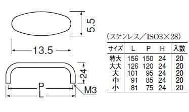 サイズ(ピッチ):特大(150)・大大(120)・大(95)・中(85)・小(75)