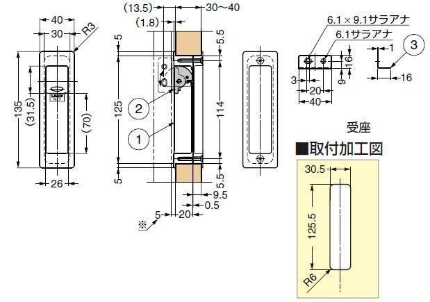・座金を取りつける場合は、図面中の※印部の寸法を約7ミリに設定し、ブレのない引き戸で受け座と引き手がすらない様にしてください。