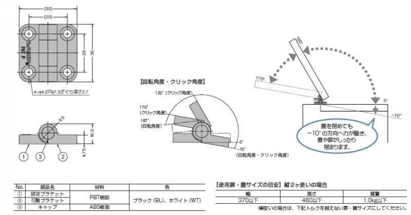 ▼ LAMP クリックヒンジ HG-MPS2-BL