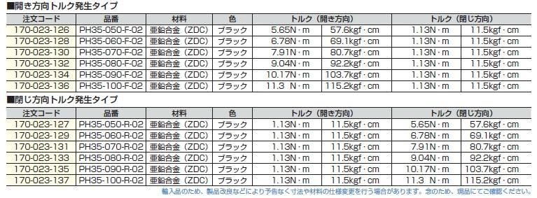 ▼ LAMP ワンウェイトルクヒンジ PH35-090-F-02