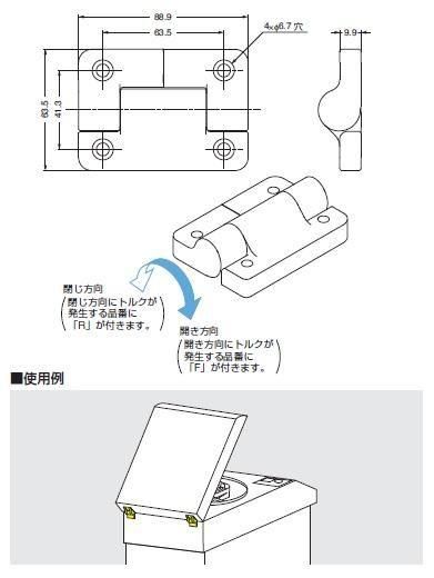 ●亜鉛合金製のトルクヒンジです。片方向にトルクがほとんど発生しないため、扉などをスムーズに操作できます。