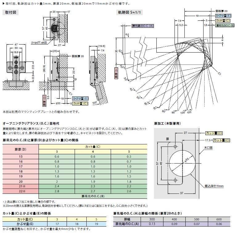 ▼ LAMP オリンピア スライド丁番 360-26-19T 200個単位 キャッチ無