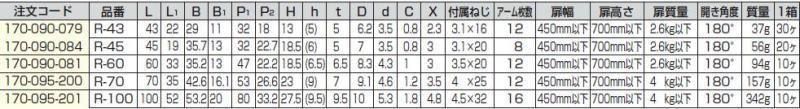 ・小型軽量扉に適したものから、中・重量扉に適したものまで5種類のタイプがあります。