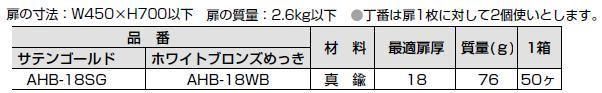 アングル蝶番B型精密肉厚丁番)AHB-18WB