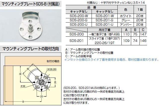 ●SDS-200は吊元丁番が平蝶番の場合に使用します。