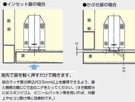 ・かぶせ扉にご使用の場合は下図のように側板と扉の間をあけてください。