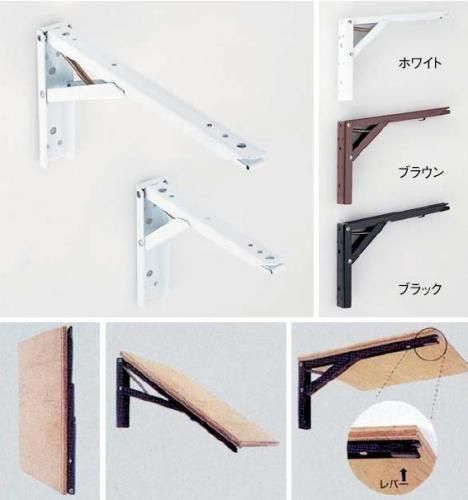 TANNERのじゃませんDIYシリーズのワンタッチ式折りたたみ棚受け金具「タッチポン」は、ワンタッチで開閉が出来る折りたたみ式棚受けです。