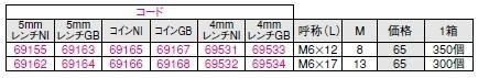 仕上げはニッケルメッキ(NI)とGBメッキ(GB)の2種。