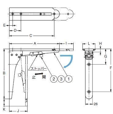 LAMP ステンレス鋼製折りたたみ棚受 BOS-240型