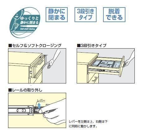 ●セルフ&ソフトクロージング機構はレールに内蔵しているため、従来の