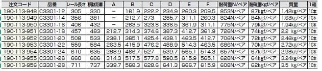 ●表の耐荷重は、引き出し側レールを伸ばした時のレール中央部での静止荷重です。
