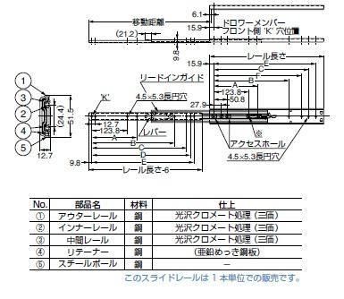 ●表の耐荷重は、引き出し側レールを伸ばした時のレール中央部での静止荷重です。
