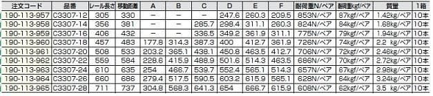●表の耐荷重は、引き出し側レールを伸ばした時のレール中央部での静止荷重です。