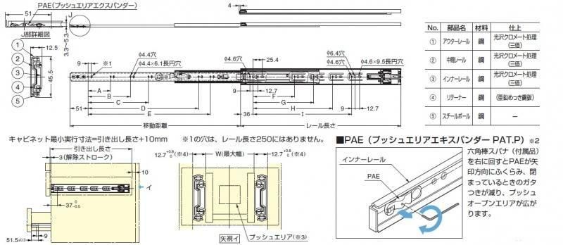 ▼ LAMP スライドレール プッシュオープン機構 4660-650 箱単位