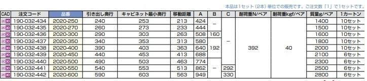 ▼ アンダーマウント型レール セルフ&ソフトクロージング機構付 底付けタイプ 2020-550 箱単位