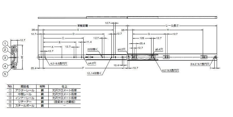 ●画像3の表の耐荷重は、引き出し側レールを伸ばした時のレール中央部での静止荷重です。